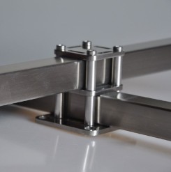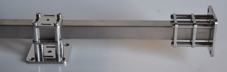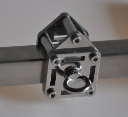 Hier die Basis des Systems. Die Befestigungsanker (funktionieren vertikal und horizontal) als Träger für die Vierkantrohre. Auf den Rohren kann einer unserer den speziellen Bedürfnissen angepasster Gleit- und Fixierwagen fahren: